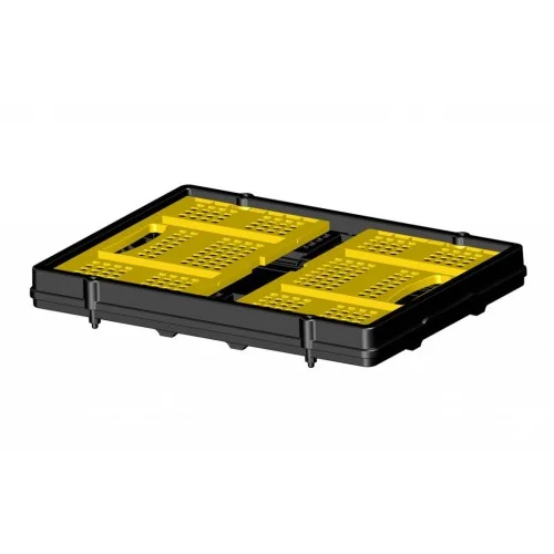 Cesta plegable de la marca Stanley, fabricada en plástico de alto impacto, ideal para transporte y organización de herramientas, mercadería o insumos. Su diseño plegable permite ahorrar espacio y facilitar el almacenamiento cuando no está en uso.