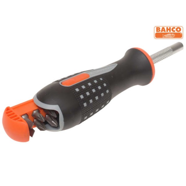 Destornillador de mano con portapuntas integrado y almacenamiento de puntas, diseñado para permitir el apriete y afloje rápido de tornillos con diversas cabezas mediante puntas intercambiables. Su mango ergonómico de múltiples componentes ofrece alto torque con el mínimo esfuerzo y un agarre firme incluso con manos húmedas o aceitosas.