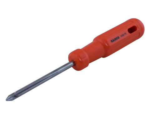Destornillador con punta Phillips de la serie estándar Bahco, diseñado para el apriete y afloje de tornillos de cabeza cruzada pequeña con máxima comodidad y precisión. Cuenta con mango ergonómico para un agarre firme y transmisión de torque eficaz, ideal para trabajos de mantenimiento, montaje y reparación de equipos sensibles.