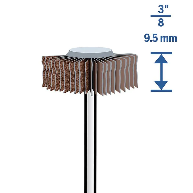 Rueda de lijado tipo “flap wheel” Dremel, diseñada para lijar, suavizar y dar forma a superficies planas o contorneadas con herramientas rotativas tipo minitorno. Sus láminas abrasivas en abanico permiten un lijado más uniforme y preciso.