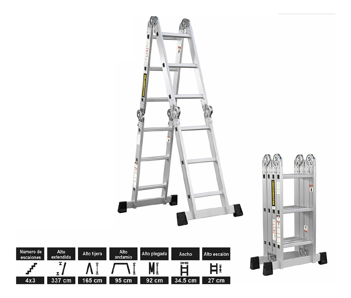 Escalera Aluminio Articulada 12 Escalones 3.37mts CROSSMASTER