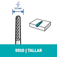 Fresa / cortador de carburo de tungsteno Dremel 9910, diseñada para tallado, grabado, desbaste y conformado de materiales muy duros con herramientas rotativas tipo minitorno. Su forma cónica y puntiaguda permite trabajar con precisión en zonas profundas o de difícil acceso.
