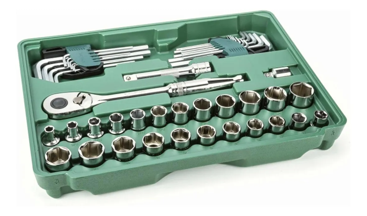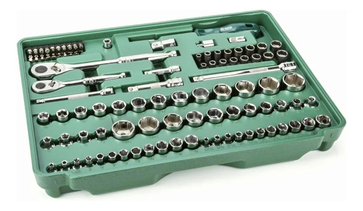 Gabinete de herramientas profesional de la marca SATA, diseñado para brindar organización, durabilidad y versatilidad en trabajos mecánicos e industriales. Incluye un completo set de 213 piezas en un gabinete metálico con cajones, ideal para talleres que necesitan un equipo completo listo para usar.