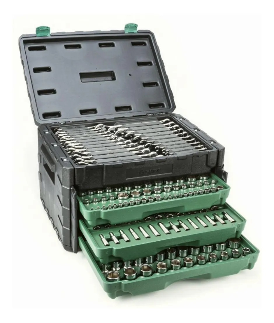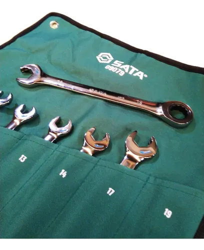 Juego de llaves combinadas con sistema criquet de la marca SATA, diseñado para trabajos de mecánica profesional y mantenimiento. Su sistema de engranaje de 72 dientes permite trabajar en espacios reducidos con mayor rapidez y precisión.