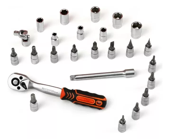 El Set Juego Tubos Bocallave 1/4 – 25pcs Maletin Hamilton JB14 es la herramienta esencial para profesionales y aficionados al bricolaje. Este kit, es sinónimo de durabilidad y resistencia gracias a su forjado en Acero Cromo-Vanadio.