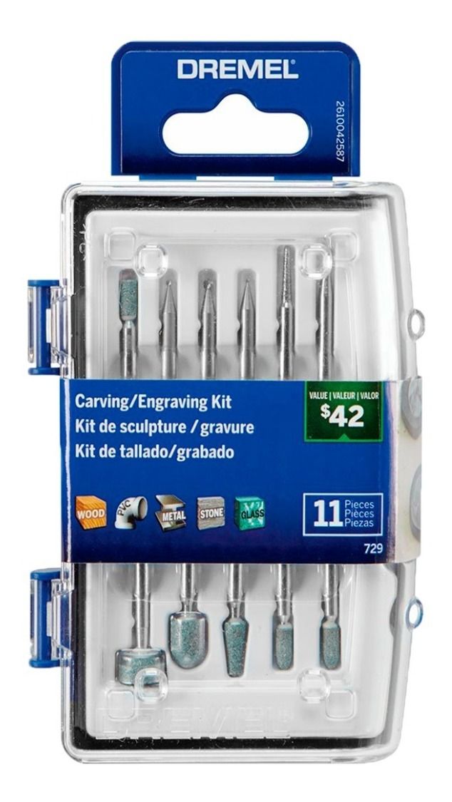 – Con este kit, obtienes 11 accesorios Dremel genuinos para tallar detalles refinados en una variedad de materiales, grabado de terracota, loza, madera y más.
