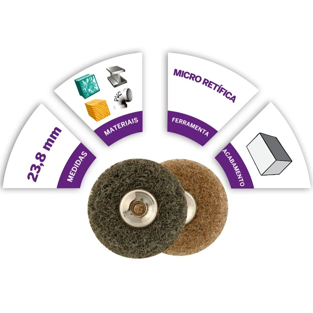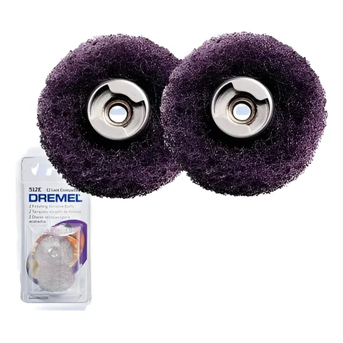 Pack de discos/pulidores abrasivos de acabado Dremel EZ Lock, diseñados para limpieza y lijado ligero en superficies con herramientas rotativas tipo minitorno y sistema de cambio rápido EZ Lock. Incluye dos discos de abrasivo de grano 180 y 280, ideal para repasar superficies, remover residuos y dar un acabado más fino.