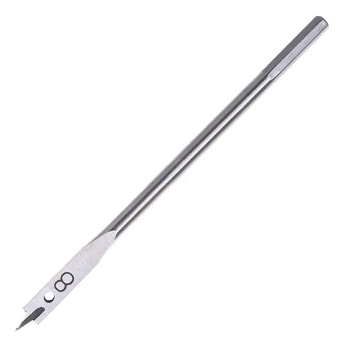 Broca tipo paleta diseñada para perforaciones rápidas y eficientes en madera y materiales derivados. Su forma permite realizar hoyos limpios y precisos, ideal para carpintería, instalaciones y trabajos de obra y taller.