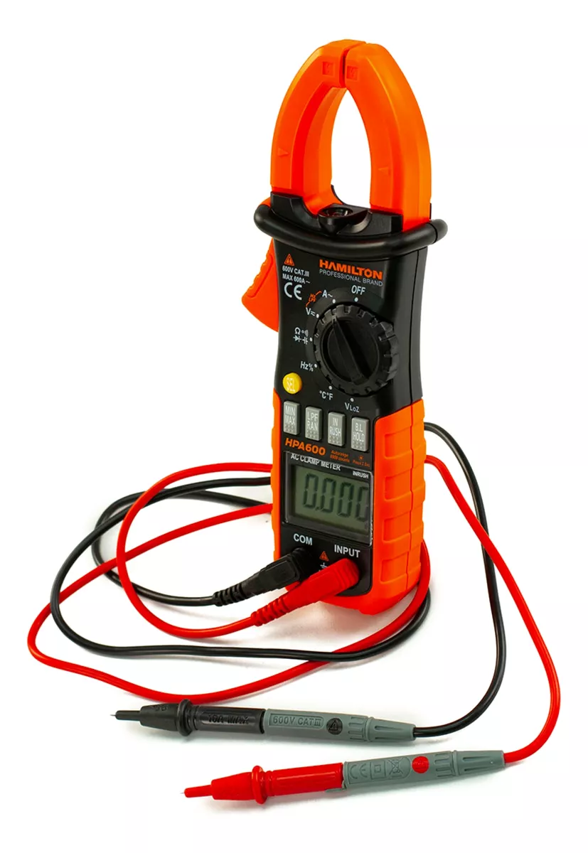 La Pinza Amperimétrica Digital True RMS Inrush Hamilton HPA600 es una herramienta esencial para profesionales de la electricidad y la electrónica. Con una capacidad de medir corrientes de hasta 600 A tanto en corriente alterna como continua, este dispositivo se adapta a diversas aplicaciones, desde instalaciones eléctricas hasta diagnósticos de equipos. Su pantalla digital facilita la lectura de datos, mientras que su capacidad de medir frecuencias de hasta 10 MHz y temperaturas de hasta 1000 °C la convierte en una opción versátil para entornos exigentes. Además, cuenta con funciones de testeo de continuidad y diodo, lo que la hace ideal para verificar circuitos y componentes. Diseñada para un uso prolongado, la HPA600 funciona con tres baterías AAA (NO INLUIDAS) , asegurando un rendimiento confiable en el tiempo. Su diseño compacto y ligero permite un manejo cómodo, lo que la convierte en una herramienta práctica para técnicos y electricistas en el campo.