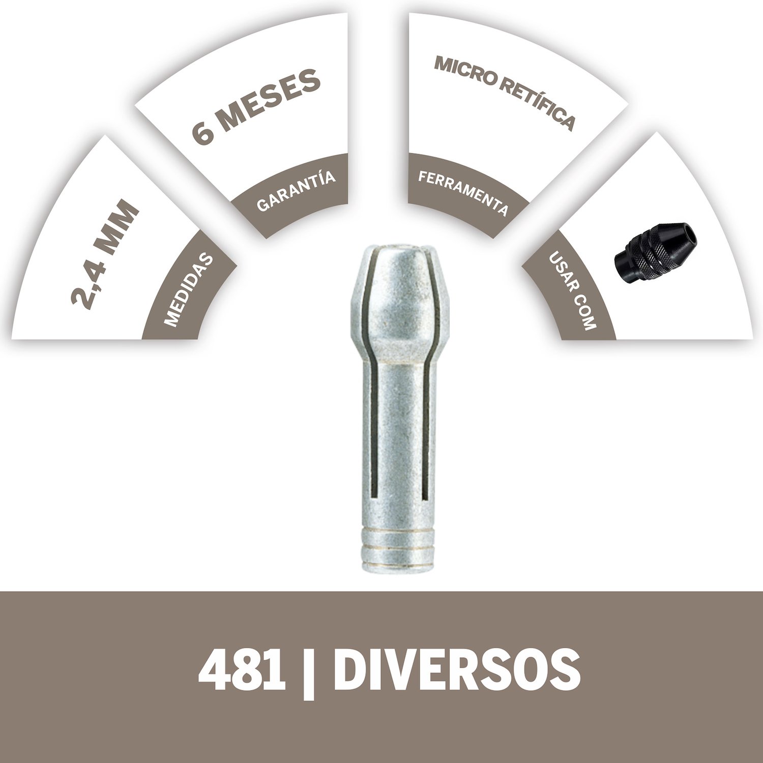 Pinza (boquilla / collet) Dremel diseñada para sujetar accesorios con vástago de 2,4 mm en herramientas rotativas tipo minitorno. Garantiza una sujeción firme y centrada, ideal para trabajos de precisión.